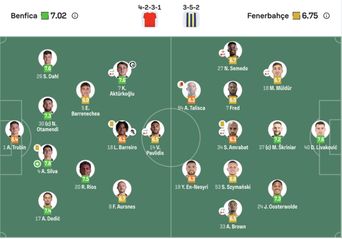 Лучшим игроком был признан Керем Актюркоглу с оценкой – 7,6. Худшая оценка у Андерсона Талиски, получившего волшебную карточку в матче – 6,3.