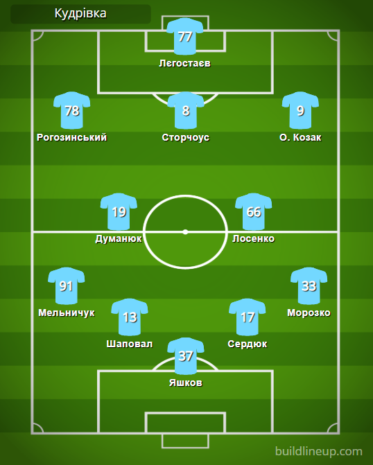 «Кудровка»: Яшков – Мельничук, Шаповал, Сердюк, Морозко (Мачелюк, 62) – Думанюк, Лосенко (Векляк, 79) – Рогозинский (Коркишко, 72), Сторчоус (Нагнойный, 72), А. Козак (Свитюха, 61) – Легостаев.