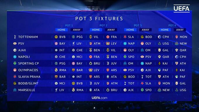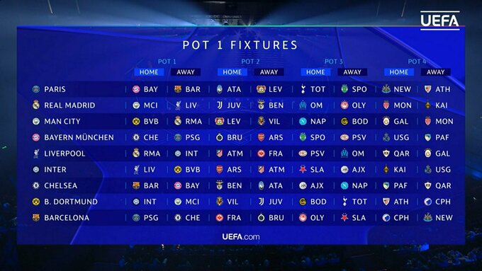 Результаты жеребьевки Лиги чемпионов для каждой команды