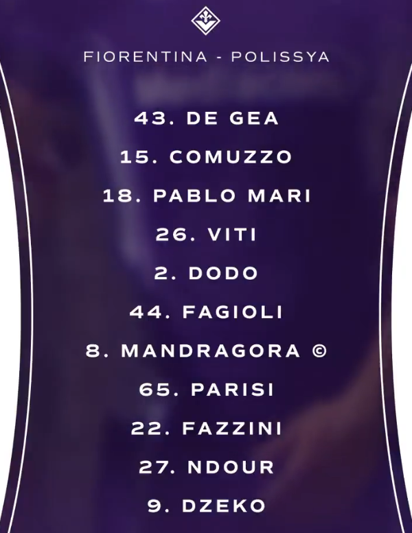 Стартовые составы на матч «Фиорентина» – «Полесье»: