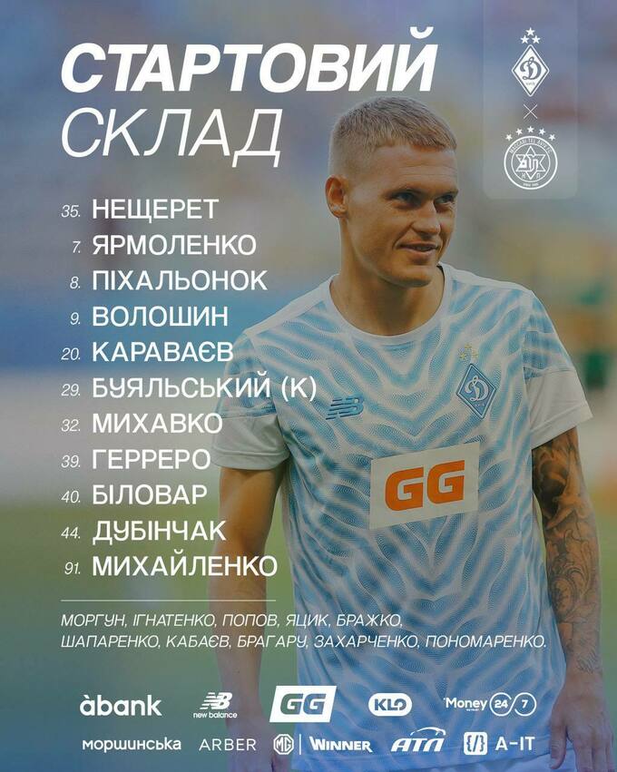 Состав Динамо на матч против Маккаби Тель-Авив