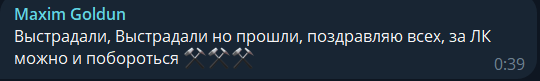 Maxim Goldun: Выстрадали. Выстрадали но прошли, поздравляю всех, за ЛК можно и побороться.