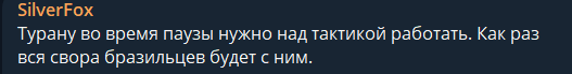 SilverFox: Турану во время паузы нужно над тактикой работать. Как раз вся свора бразильцев будет с ним.