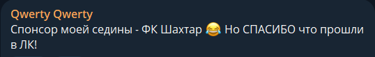 Qwerty Qwerty: Спонсор моей седины - ФК Шахтар 😂 Но СПАСИБО, что прошли в ЛК!