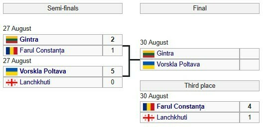В матче за третье место квартета 30 августа Фарул из Румынии разгромил команду Ланчхути из Грузии со счетом 4:1.