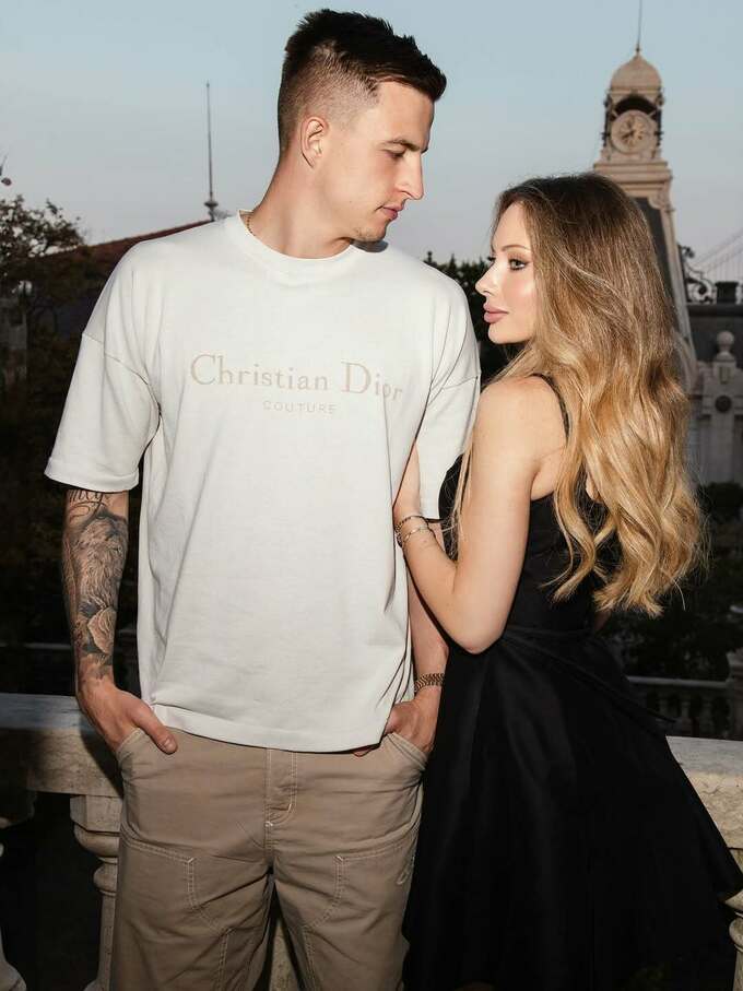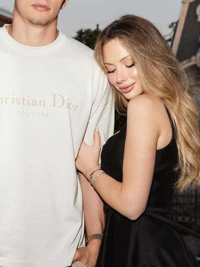 Марина выложила совместные кадры, где позирует в элегантном черном платье, а Анатолий — в стильном casual-образе.