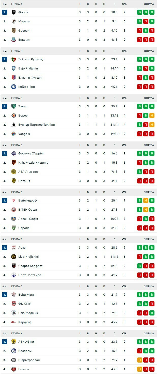 - Группа 8: ХИТ (Украина), Киев Футзал (Украина), Vrhnika (Словения), FORCA (Северная Македония)
