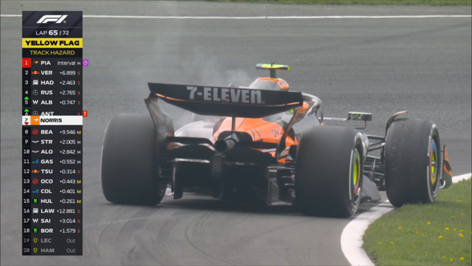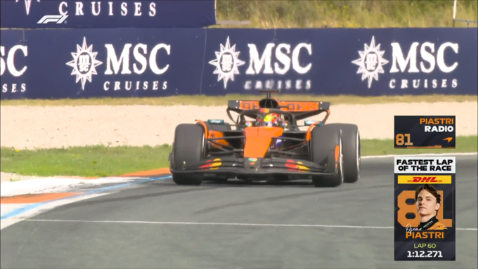 В течение всего заезда британец был рядом с конкурентом, но, по сути, ни одной атаки не провел. Пиастри грамотно держал дистанцию, занимался менеджментом резины и добыл седьмую в сезоне победу.