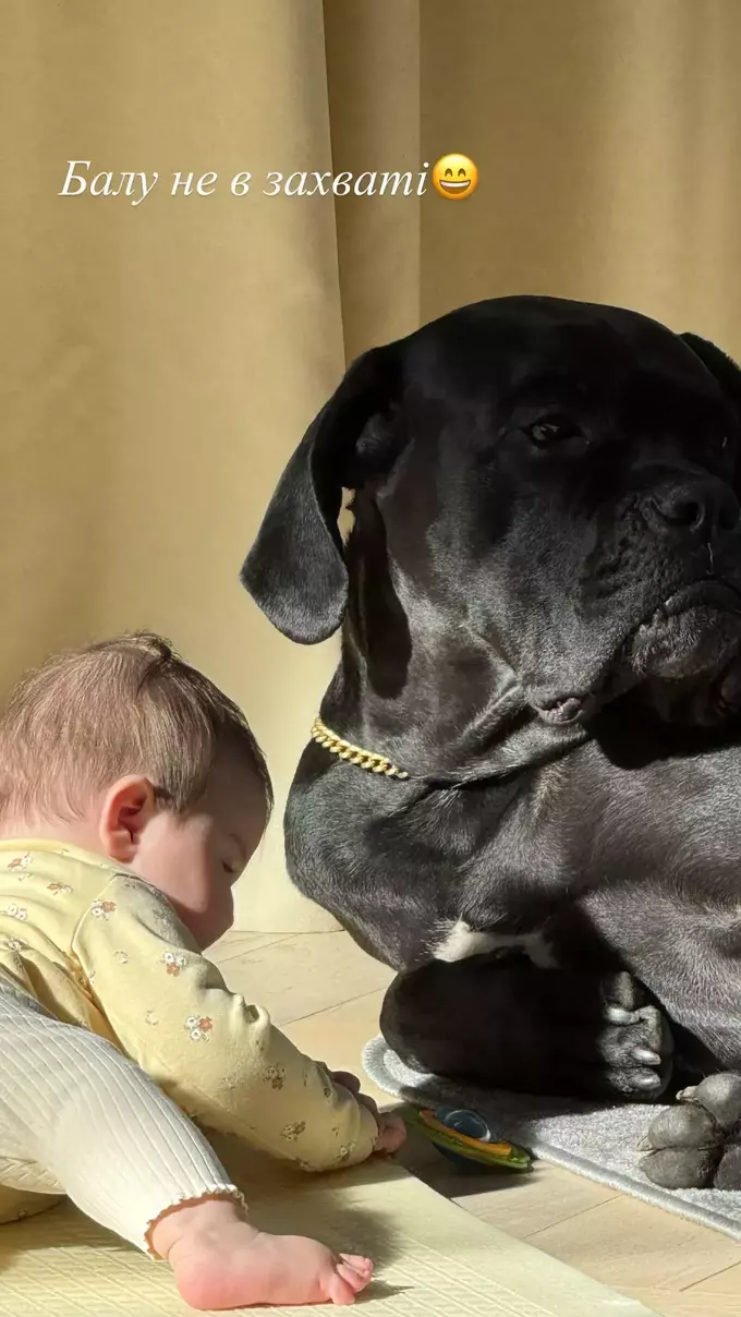 Подписчики интересуются, как малышка ладит с большим псом Балу. «Он привыкает, но иногда Поля слишком активно зовет его играть», — шутит Виктория.