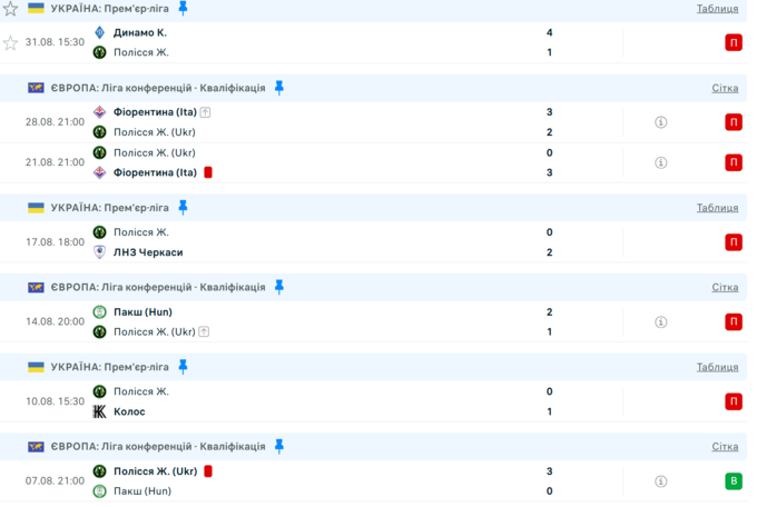 Для клуба из Житомира это поражение стало шестым подряд, а разница голов за этот период составляет 4:15. Последняя победа «волков» состоялась 7 августа дома против «Пакша» в Лиге конференций (3:0).