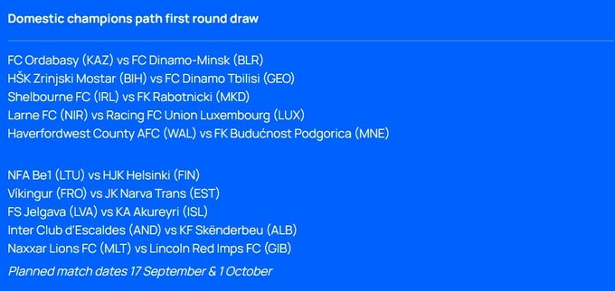 Победитель этой пары в третьем раунде встретится с сильнейшим в противостоянии между шотландским «Хибернианом» и косовским клубом «2 Коррику».