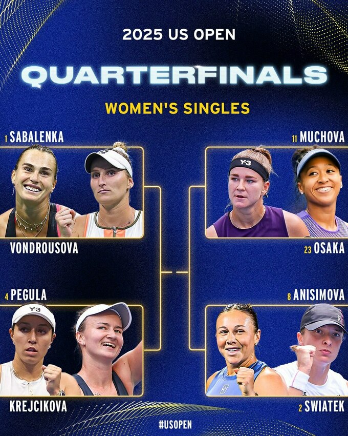 1/4 финала: Соболенко – Вондроушова, Пегула – Крейчикова, Мухова – Осака, Анисимова – Свентек