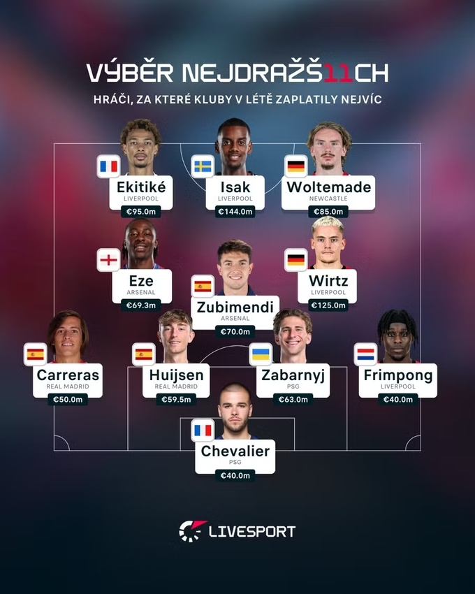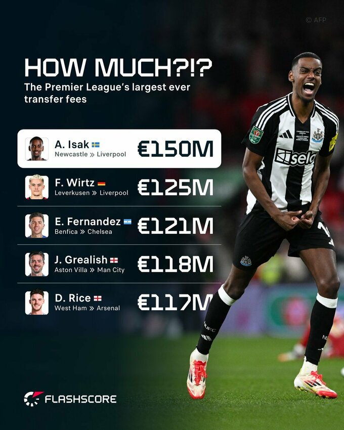 - Александр Исаак (Ньюкасл → Ливерпуль, €144 млн)