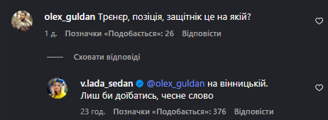 В комментариях одного из болельщиков возмутило, что Влада и ее дочь в своей речи используют некоторые русские слова. Между ним и девушкой состоялся диалог.