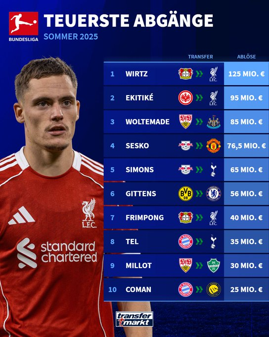 Самые дорогие продажи игроков клубами немецкой Бундеслиги этим летом