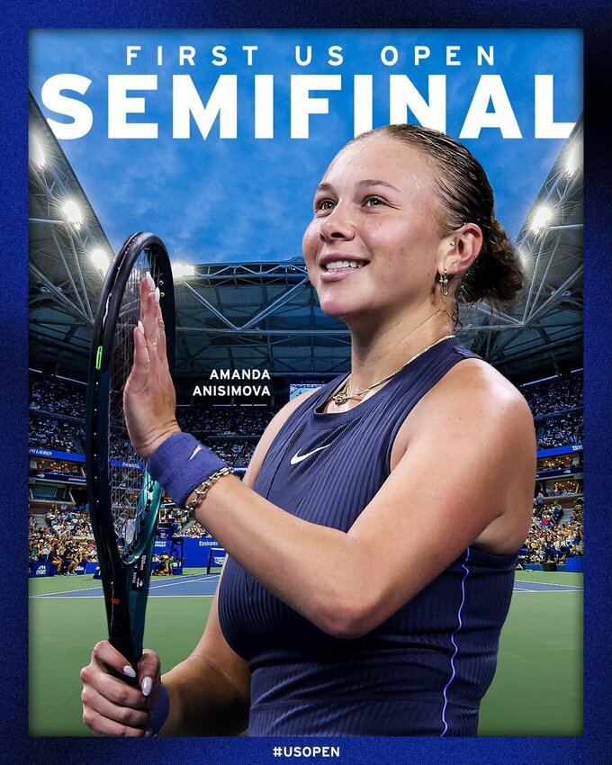 Американская теннисистка, девятая ракетка мира Аманда Анисимова вышла в полуфинал Открытого чемпионата США 2025.