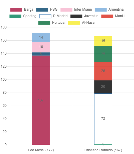 Этот дубль стал для Месси 172-м в карьере. Он превосходит по этому показателю своего вечного соперника Криштиану Роналду – 167.
