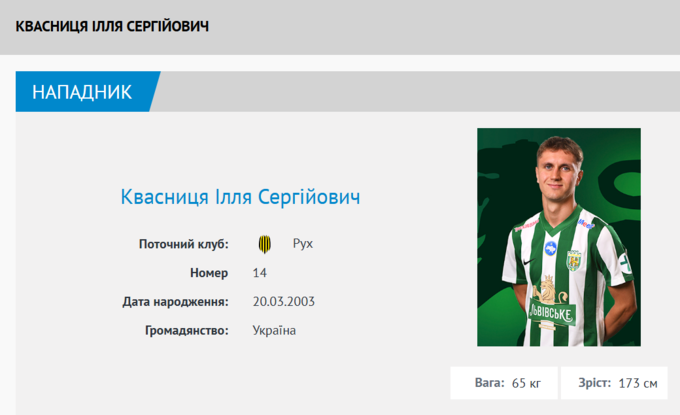 Львовский «Рух» заявил украинского вингера «Карпат» Илью Квасницу.