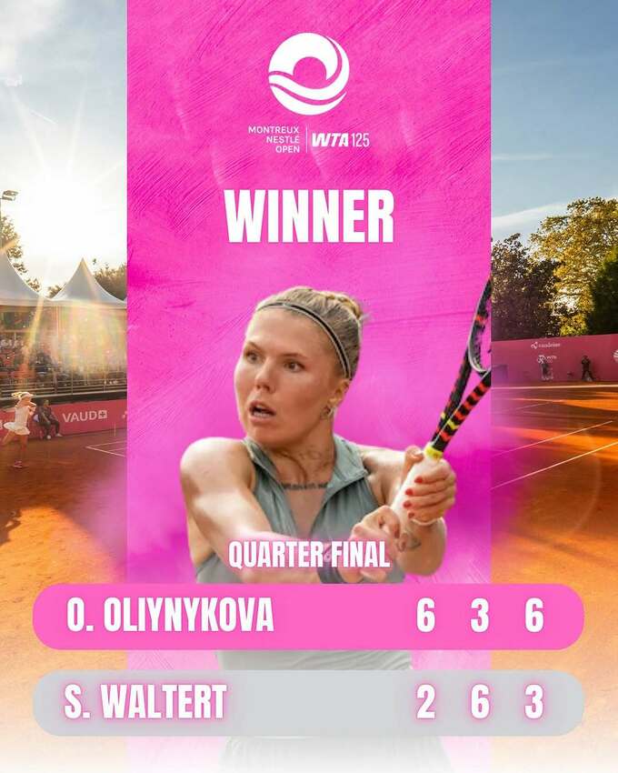 В Швейцарии Олейникова, помимо Вальтерт, также выиграла у Майяр Шериф и Теодоры Костович. Ее следующей оппоненткой будет Дарья Семенистая (Латвия, WTA 115), которая посеяна под пятым номером.