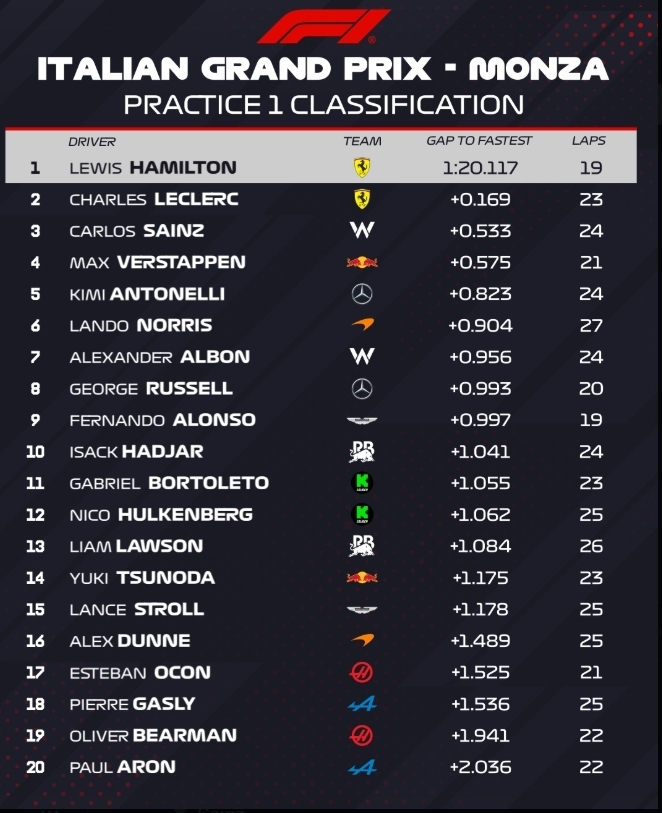 В первой сессии своих фанов сумели порадовать гонщики Феррари – Льюис Хэмилтон показал лучшее время, опередив напарника Шарля Леклера на 0,2 секунды.