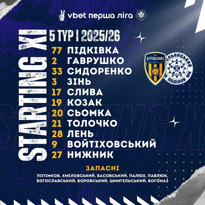 Первая лига, 5-й тур. Агробизнес и Подолье назвали стартовые составы
