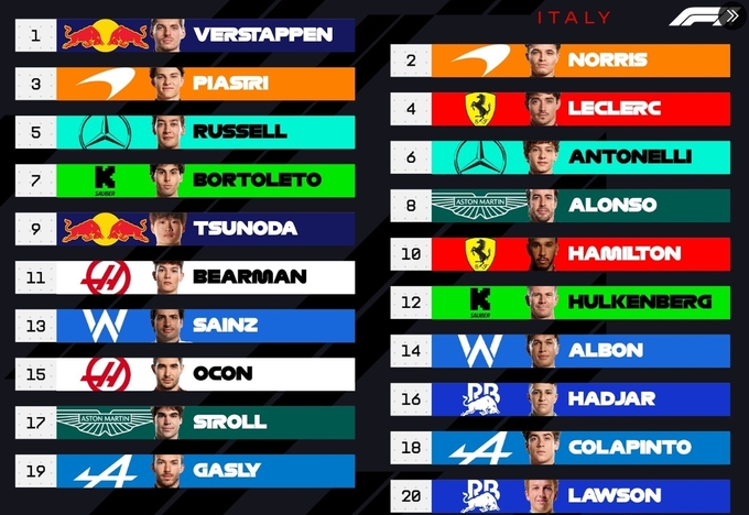 Интересно, что во время первой попытке в решающем сегменте лучшее время сперва было у Норриса, затем лучшим стал Пиастри, а его время перебили Леклер и Ферстаппен.