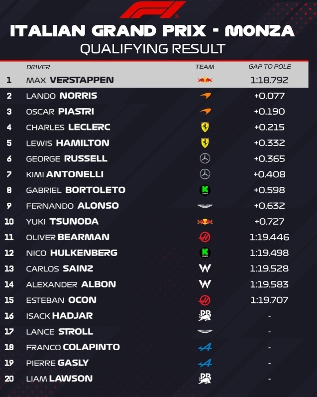 Сенсационный и рекордный круг. Состоялась квалификация Гран-при Италии