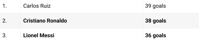 Чтобы достичь отметки в 38 забитых мячей в квалификации ЧМ, Роналду понадобилось 48 матчей, тогда как Месси забил 36 голов в 72 поединках.