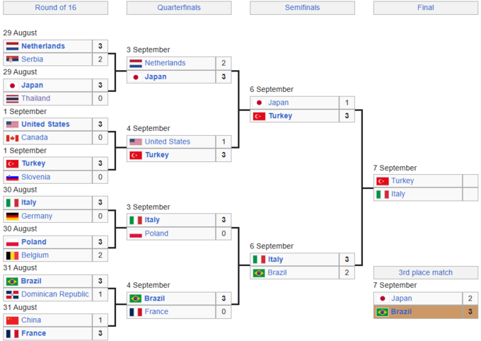 Чемпионат мира по волейболу. Бразилия и Япония определили первого призера