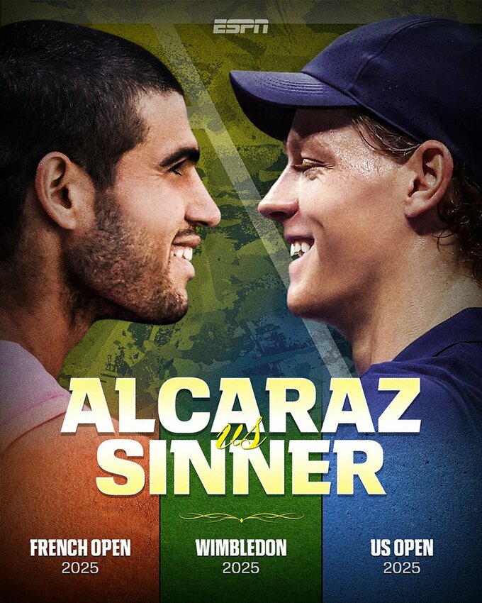 Синнер и Алькарас проведут очное противостояние в третьем финал Grand Slam подряд. На Ролан Гаррос победу одержал Карлос, на Уимблдоне – Синнер.