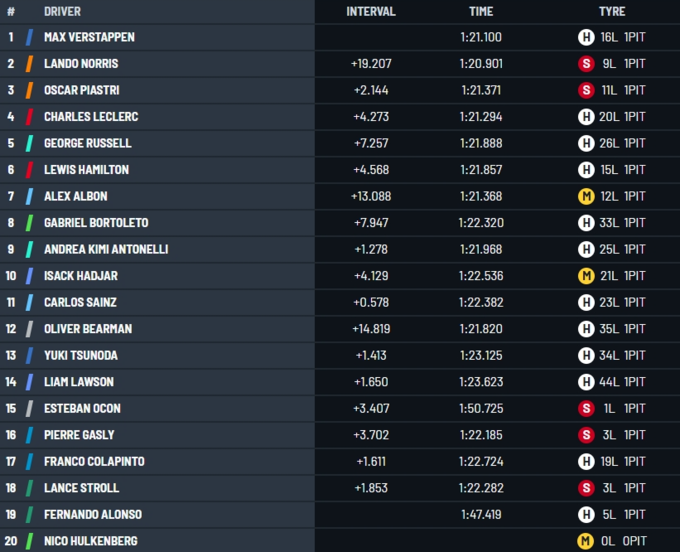 А Макларен устроил себе очередную драму во время единственного пит-стопа, когда Оскар Пиастри, который был позади напарника Ландо Норриса, поехал на пит-стоп первым, хотя обычно приоритет отдают тому, кто впереди.