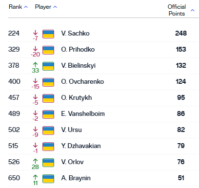 Украинцы в рейтинге АТР