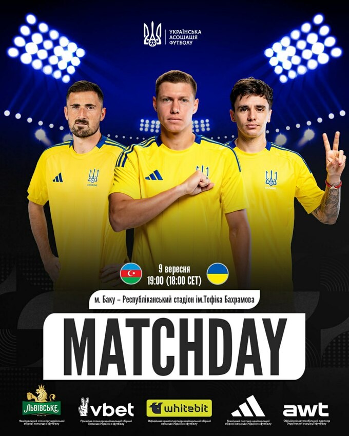9 сентября сборная Украины проведет выездной матч квалификации чемпионата мира 2026 против команды Азербайджана.