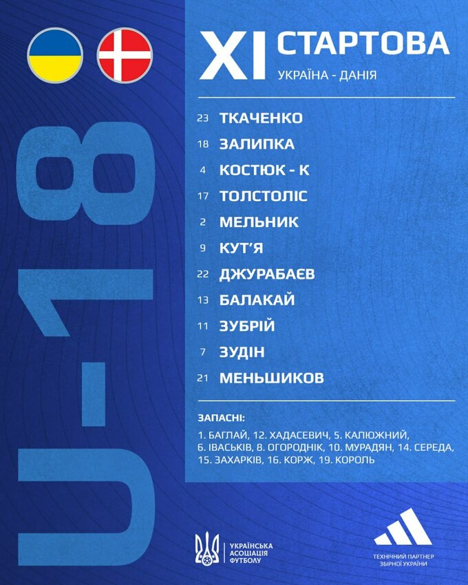 Назван стартовый состав сборной Украины U-18 на матч против Дании U-18