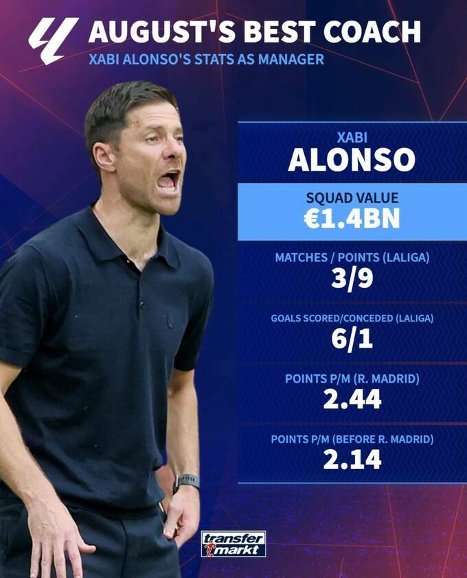 Совсем недавно тренер мадридского «Реала» Хаби Алонсо официально стал лучшим наставником августа в Ла Лиге.