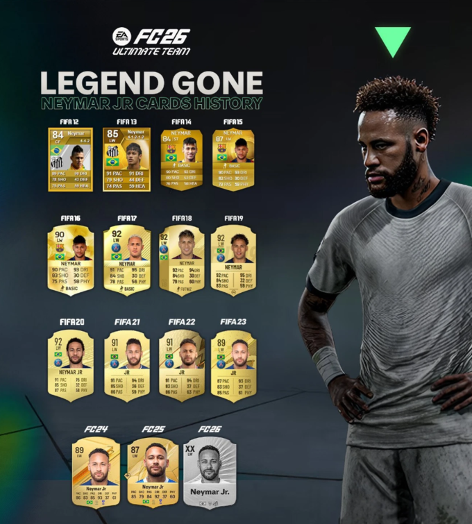 Компания Electronic Arts не смогла договориться о лицензии с бразильской футбольной лигой «Серия A», где сейчас выступает Неймар за «Сантос». До этого момента игрок присутствовал во всех частях симулятора, начиная с FIFA 12, которая вышла в 2011 году. EA уже представила расписание ключевых событий в FC 26: