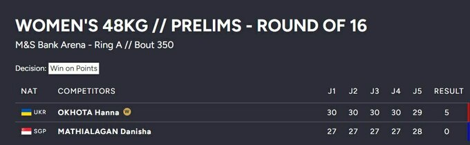 Во вторник, 9 сентября, первый поединок на турнире провела Анна Охота, которая встретилась в 1/8 финала с Данишей Матиалаган из Сингапура. Украинка полностью контролировала ситуацию в ринге, превосходно двигалась на ногах и постоянно беспокоила соперницу точными ударами.