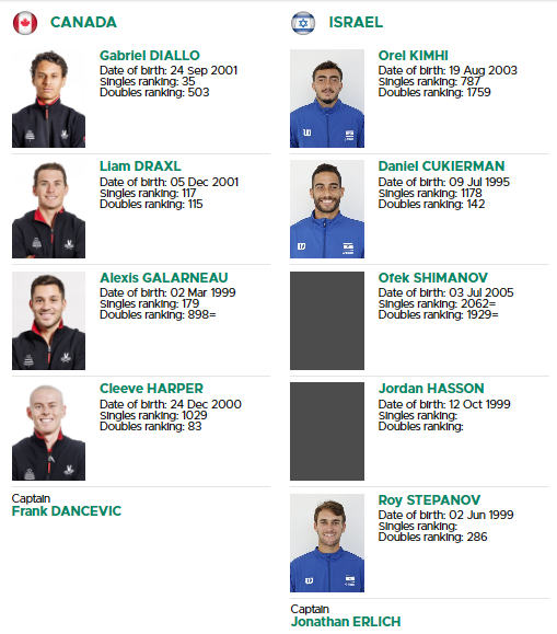 12 сентября в Галифаксе (Канада) состоится матчевое противостояние Первой Мировой Группы Кубка Дэвиса между сборными Канады и Израиля.