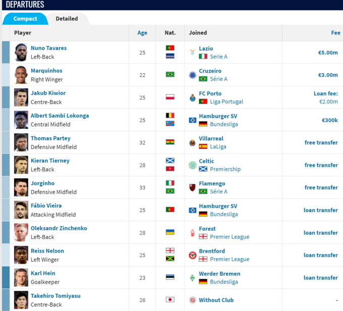 Все трансферы Арсенала на выход (летнее ТВ-2025)
