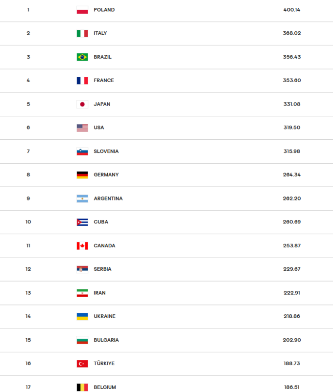 Мировой рейтинг FIVB. Место Украины и ее соперников перед стартом ЧМ