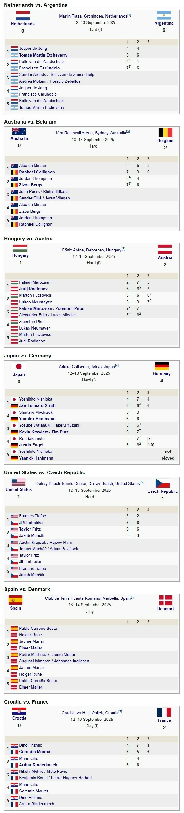 12–14 сентября проходят матчи 2-го раунда квалификации Кубка Дэвиса 2025.