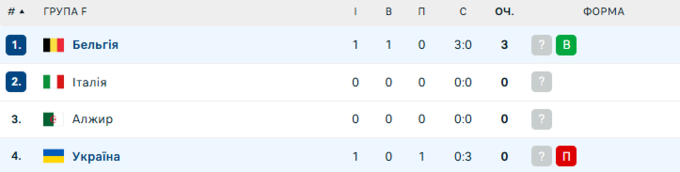 Согласно формату соревнований, 32 участника разделены на 8 групп по 4 коллектива. Для выхода в финальную часть необходимо занять одно из двух первых мест в своей группе. Украина попала в группу F, где ее соперниками являются Бельгия, Алжир и Италия.