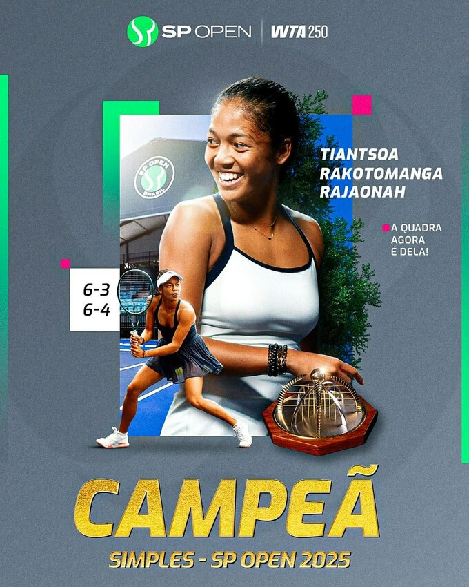 19-летня французская теннисистка Тианцоа Сара Ракотоманга Раджаона (WTA 214) завоевала трофей на хардовом турнире WTA 250 в Сан-Паулу, Бразилия.