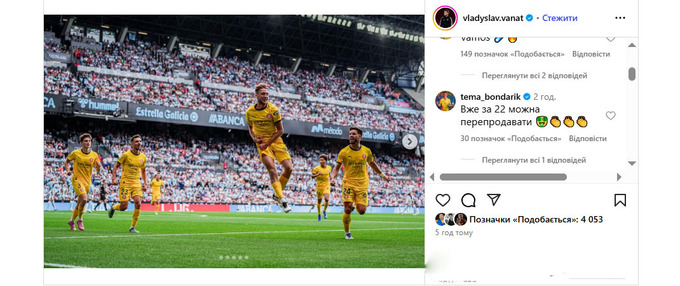 Девушка игрока отреагировала сердечком, а Артем Бондаренко из «Шахтера» пошутил, что теперь его можно перепродать уже за 22 млн евро.