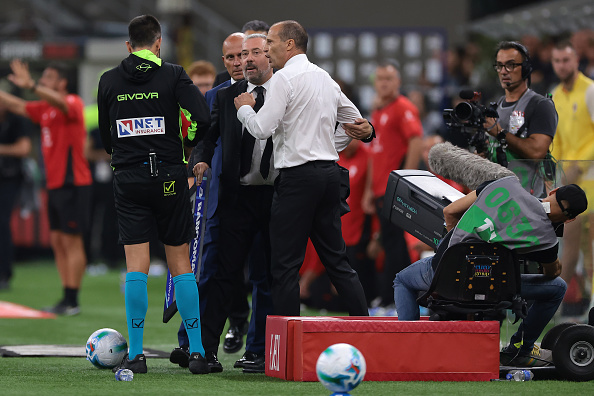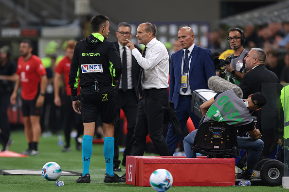 В конце второго тайма Аллегри получил красную карточку. Специалист был возмущен действиями рефери и выразил претензии резервному судье из-за того, что главный арбитр матча Маттео Марченаро не назначил пенальти в ворота Болоньи после падения Кристофер Нкунку – игрок гостей Ремо Фройлера выставил ногу, из-за которой Нкунку и свалился на газон.