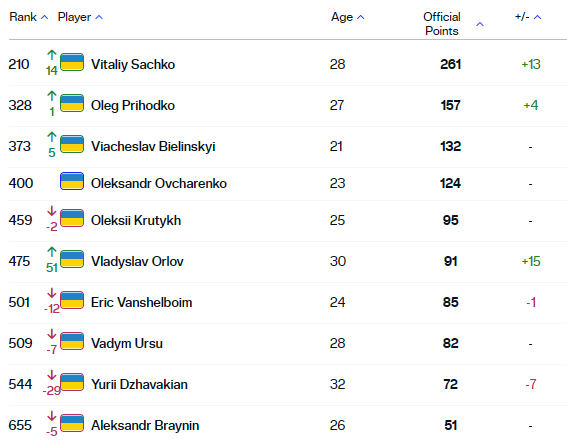 Украинцы в рейтинге АТР