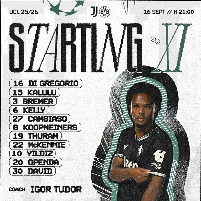 Ювентус: Ди Грегорио, Келли, Бремер, МакКенни, Камбисо, Тюрам, Коопмейнерс, Калюлю, Йылдыз, Опенда, Дэвид