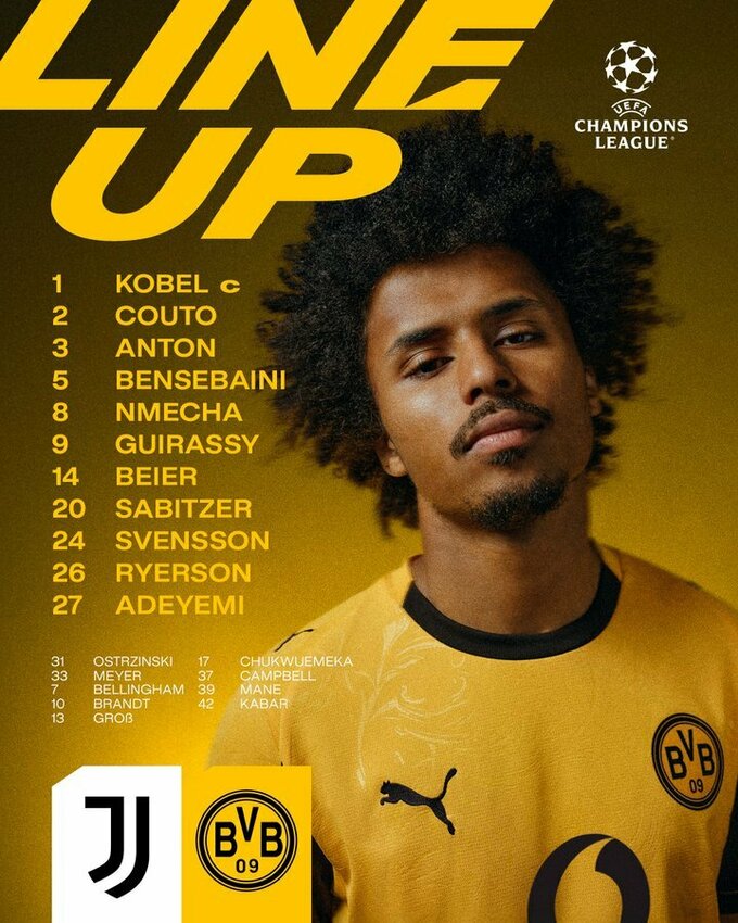 Обнародованы стартовые составы на матч Ювентус – Боруссия Дортмунд