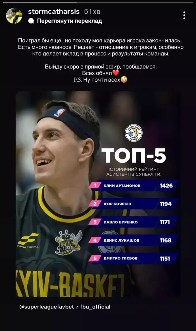 Известный защитник Павел Буренко, в прошлом сезоне ставший вице-чемпионом Украины с «Киев-Баскетом», на своей странице в Instagram намекнул на возможное завершение профессиональной карьеры.