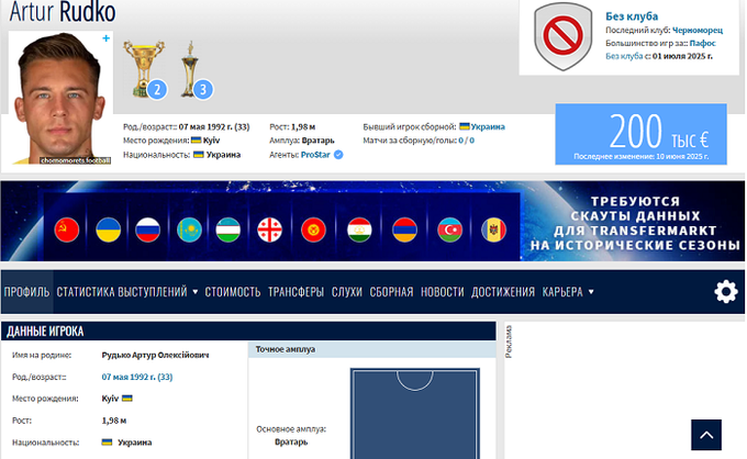 Последним клубом в карьере вратаря был одесский «Черноморец», который он покинул после завершения прошлого сезона.